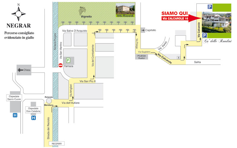 Seguire le indicazioni per Verona Centro e poi per Valpolicella Negrar, Parona, Arbizzano, S.Maria di Negrar